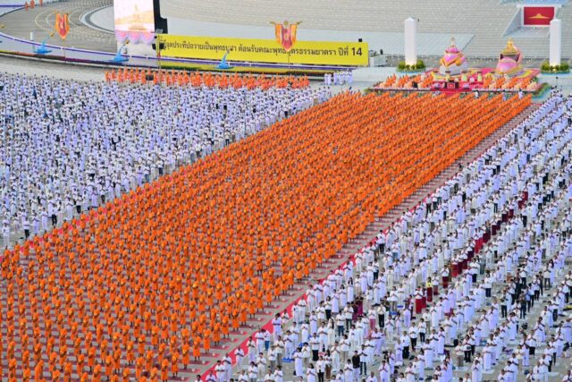 ปทุมธานี-โดรนแปรอักษรและภาพที่เนื่องกับอนุสรณ์สถานทั้ง 7 แห่งส่งท้ายโครงการฯ พระธรรมยาตราพันกว่ารูปจุดประทีปถวายเป็นพุทธบูชา อนุสรณ์สถาน