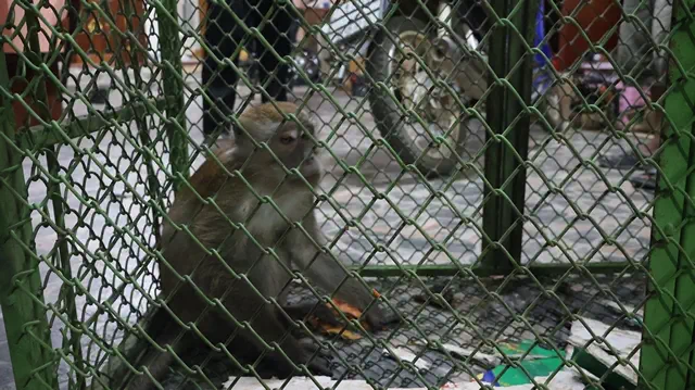 นายยุทธศักดิ์ เล่าให้ฟังว่า ลิงมีอยู่ 2 ตัว มาอยู่แถวนี้ประมาณ 2 อาทิตย์แล้ว อีกตัวอยู่ในสวนยางพารา ด้านหลังบ้าน ไม่มายุ่งบริเวณบ้านชาวบ้าน มีเพียงตัวนี้ที่มาหากินผลไม้ของชาวบ้านที่ปลูกไว้ข้างบ้าน มะละกอ กล้วย เงาะ ที่ปลูกไว้เก็บกินหมด แถมยังมากระโดดตามหลังคา รั้ว กำแพงบ้าน จนทำให้หลังคาแตก ข้าวของเสียหาย อย่างบ้านของตน ทำฝ้าเพดานหล่นลงมา และชอบมาเดินรื้อข้าวของที่วางอยู่รอบบ้าน จนตนทนไม่ไหว จึงได้โทรศัพท์แจ้งเจ้าหน้าที่ และไปยืมกรงดักของชมรมคนรักสัตว์เบตง มาดัก โดยใส่กล้วยและไข่ไก่ ไว้ในกรงเป็นอาหารล่อ เมื่อ 2 วันที่ผ่านมา จนวันนี้กลับจากทำงาน ก็ได้เดินไปดูที่กรงดัก ก็พบว่า ลิงติดอยู่ในกรงแล้ว จึงโทรศัพท์แจ้งให้ทางชมรมคนรักสัตว์บตง มารับลิงไปดำเนินการตามขั้นตอนต่อไป
