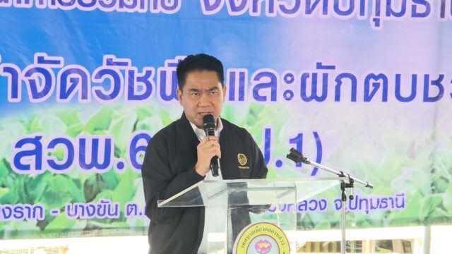 ด้าน นายดงพล รุจิธรรมธัช รองผู้ว่าราชการจังหวัดปทุมธานี กล่าวว่า ปัญหาผักตบชวาที่กีดขวางทางน้ำและการสัญจร ส่งผลกระทบโดยตรงต่อประสิทธิภาพการระบายน้ำ วันนี้เป็นเรื่องน่ายินดีที่ทุกภาคส่วนมารวมตัวกันเพื่อฟื้นฟูแหล่งน้ำอย่างยั่งยืน โดยนำนวัตกรรม สวพ.62 ซึ่งเป็นงานวิจัยจากกรมชลประทานที่ผ่านการทดลองจนสัมฤทธิ์ผล มีต้นทุนต่ำ แต่มีประสิทธิภาพสูง และที่สำคัญที่สุดคือ ไม่ทิ้งสารพิษตกค้าง มีความปลอดภัยต่อสิ่งแวดล้อม มาใช้จัดการทรัพยากรน้ำในจังหวัดปทุมธานีของเราให้ยั่งยืนตลอดไป
