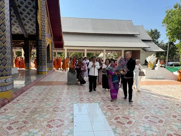 กาฬสินธุ์อนุโมทนาครอบครัวฝรั่งหัวใจพุทธถวายเกตุมาลาพระพุทธรูป