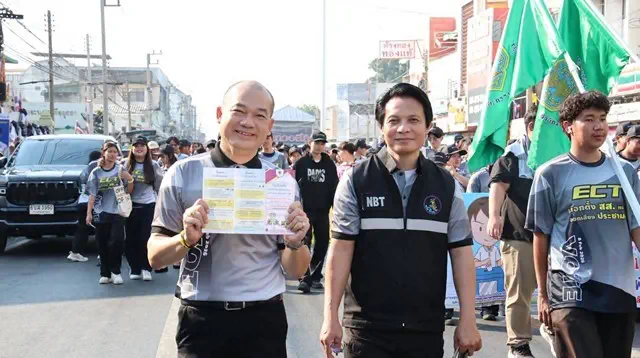จากนั้น ผู้ว่าราชการจังหวัดพระนครศรีอยุธยา เดินนำผู้เข้าร่วมกิจกรรม ออกเดินตามถนนอู่ทอง เพื่อรณรงค์ประชาสัมพันธ์การออกมาใช้สิทธิเลือกตั้ง