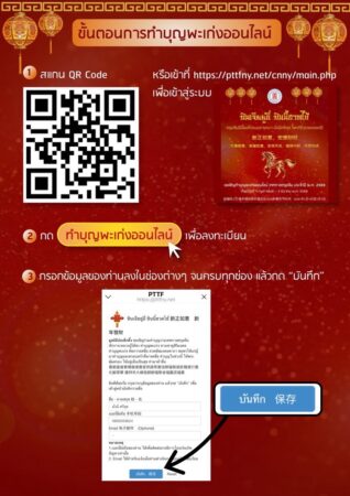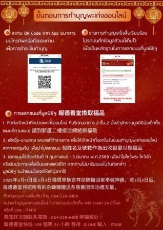 พิธีสวดชัยมงคลคาถา [พะเก่ง] มูลนิธิป่อเต็กตึ๊ง เริ่มเปิดให้สาธุชน ลงชื่อสวดชัยมงคลคาถา ตั้งแต่วันที่ 11 กุมภาพันธ์ พ.ศ. 2569 ทั้ง 2 ช่องทาง ได้แก่ 1. ที่มูลนิธิป่อเต็กตึ๊ง พลับพลาไชย และ 2.พะเก่งออนไลน์ (ผ่านทางเว็บไซต์ www.pttfny.net/cnny ) โดยท่านสามารถติดตามรายละเอียด รวมถึงรับชมพิธีรวมถึงไลฟ์พิธีสำคัญต่างๆ ตลอดช่วงเทศกาลได้ที่เฟซบุ๊ก แฟนเพจมูลนิธิป่อเต็กตึ๊ง www.facebook.com/atpohtecktung ติดต่อสอบถามข้อมูลเพิ่มเติมได้ที่ สายด่วนป่อเต็กตึ๊ง 1418