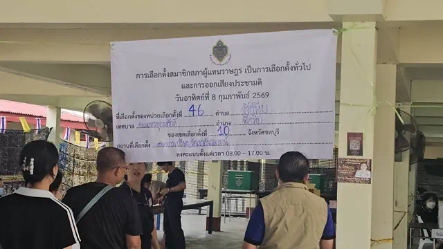 บรรยากาศการเลือกตั้งในพื้นที่อำเภอสัตหีบ จังหวัดชลบุรี เป็นไปอย่างคึกคักตั้งแต่ช่วงเช้า หลังเปิดหีบเลือกตั้ง เมื่อเวลา 08.00 น. วันที่ 7 กุมภาพันธ์ 2569 พบว่ามีกำลังพลกองทัพเรือและประชาชนในพื้นที่ทยอยเดินทางออกมาใช้สิทธิ์อย่างต่อเนื่อง