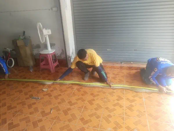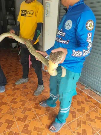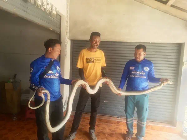 หลังจากนายเอกสิทธิ์ จันทร์พร้อย เจ้าหน้าที่ฯได้รับการประสานจึงพร้อมด้วยนายยูโซ๊ะ อาหลี และนายประยูร ขุนศรีรักษา รีบนำอุปกรณ์ในการจับสัตว์เลื้อยคลานรุดเข้าตรวจสอบทันที
