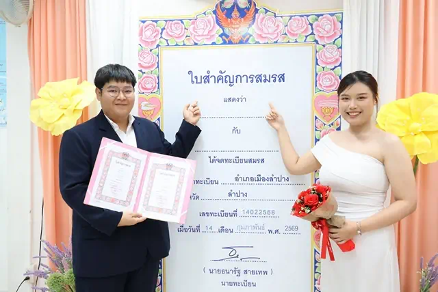 โดยสำนักทะเบียนอำเภอเมืองลำปาง เปิดให้บริการจดทะเบียนสมรส ระหว่างวันที่ 1–28 กุมภาพันธ์ 2569 เวลา 08.30–16.30 น. (เฉพาะวันและเวลาราชการ) ณ สำนักทะเบียนอำเภอเมืองลำปาง อาคารที่ว่าการอำเภอเมืองลำปาง และในวันเสาร์ที่ 14 กุมภาพันธ์ 2569 เวลา 11.00–16.00 น. จะจัดกิจกรรมจดทะเบียนสมรสนอกสถานที่ ณ ลานกุ๊กไก่ ชั้น 1 ศูนย์การค้าเซ็นทรัล ลำปาง พร้อมกิจกรรมพิเศษตลอดเดือนกุมภาพันธ์ 2569 เพื่อสร้างความประทับใจให้แก่คู่รักที่มาร่วมจดทะเบียนสมรสในช่วงเทศกาลแห่งความรักอีกด้วย
