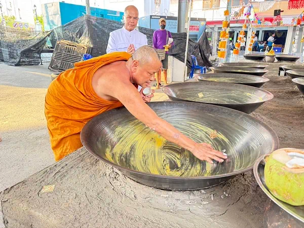 ปทุมธานี ”วัดดอน“วัดสุราษฎร์รังสรรค์ สามโคก ปทุมธานีจัดพิธีกวนข้าวทิพย์งานบุญปิดทองฝั่งลูกนิมิต