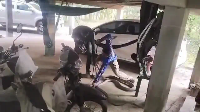 จงอาง 3.80 ม.มาส่งความรักถึงใต้ถุนบ้าน ทำเจ้าบ้านตกใจ แจ้งทีมอาสาพิทักษ์งู จ.สงขลา มาจับ