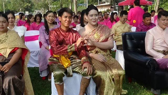 อ่างทอง-คู่รัก LGBTQ แต่งชุดไทย ควงแขนจดทะเบียนสมรส ต่อหน้าพระตำหนักคำหยาด
