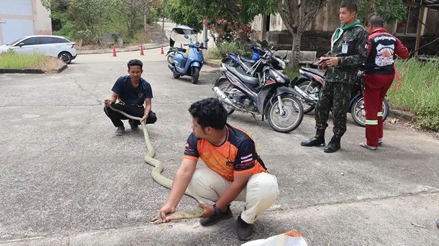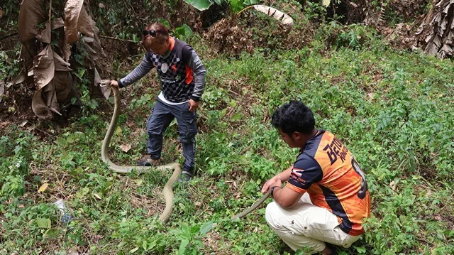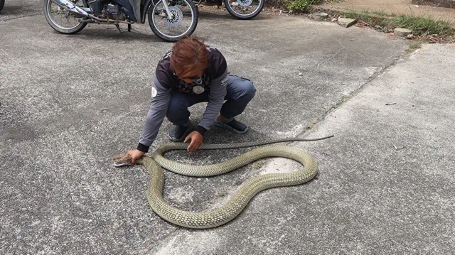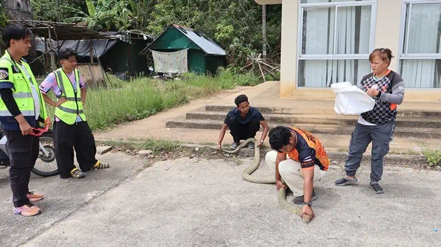 ยะลา-เบตง วันวาเลนไทน์ งูจงอาง ตัวเมีย โผล่ออกตามหาคู่ที่โดนจับเมื่อวันเลือกตั้ง เจอ อส. ป้อมปราบ รีบแจ้งกู้ภัยจับปล่อยคืนสู่ป่าธรรมชาติ