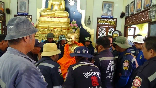 อ่างทอง-แห่รูปเหมือนหลวงพ่อนุ่ม หลวงพ่อชม เกจิลุ่มแม่น้ำน้อย ส่องเลขเด็ดหางประทัดได้เลข 485 และ 72