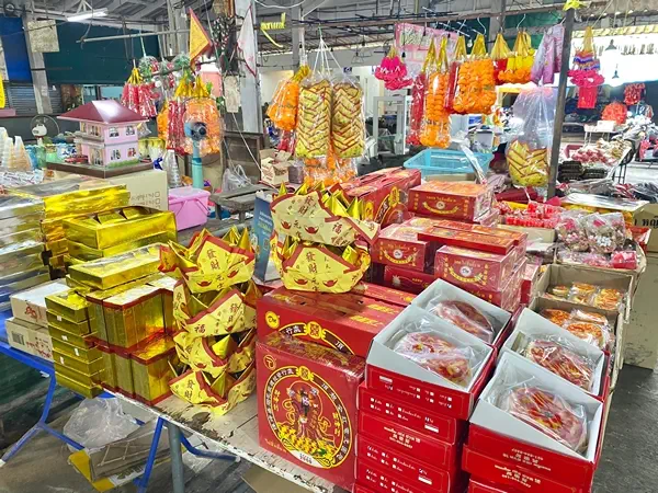 บรรยากาศวันจ่ายเทศกาลตรุษจีน ตลาดสดเทศบาลตําบลคลองใหญ่ เริ่มคึกคักในช่วงสายๆมีประชาชนเลือกซื้อของไหว้เป็นจํานวนมาก