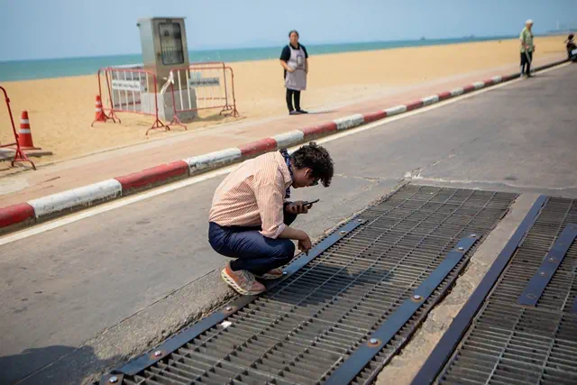 ผู้สื่อข่าวลงพื้นที่ตรวจสอบ พบว่าบริเวณชายหาดดังกล่าวมีโครงสร้างท่อระบายน้ำลักษณะสี่เหลี่ยมขนาดใหญ่ โผล่พ้นทรายกลางชายหาด ซึ่งเป็นส่วนหนึ่งของโครงการเครื่องบำบัดน้ำชายหาด โดยมีดินทรายปกคลุมตัวท่อไว้บางส่วน สร้างความแปลกใจให้กับประชาชนและนักท่องเที่ยวที่มาพักผ่อนในพื้นที่