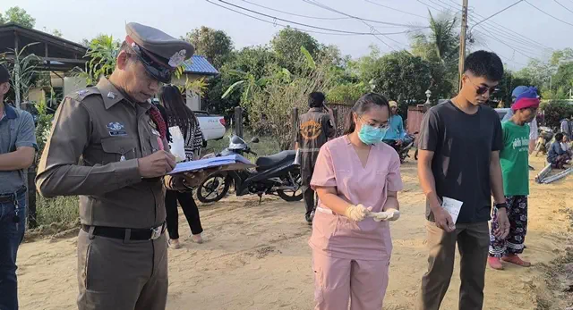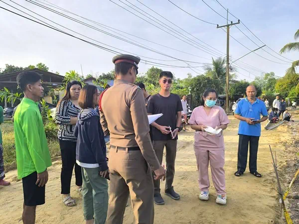 จากการบอกเล่าของนายชั้น เชือกงูเหลือม (สวมเสื้อสีเขียวแขนยาว) เป็นหลานของผู้เสียชีวิตได้เล่าว่า นายบุญลือ ตังกวย และลูกสาวได้เดินออกจากบ้านที่กำลังทำถนนใหม่เข้าซอยบ้านหนองไอกล่อมจะไปบ้านหลานสาวซึ่งห่างกันประมาณ 200 เมตรเพื่อไปกินข้าวและช่วยกันแพ็คลูกมะยงชิด เมื่อถึงเวลา 22.30 น.ลูกสาวผู้เสียชีวิตได้ขอกลับบ้านก่อน ส่วนผู้เสียชีวิตยังไม่กลับบ้านช่วยแพ็คมะยงชิด ลูกสาวเห็นว่าดึกมากแล้วพ่อยังไม่กลับมาบ้านจึงได้ออกตามหาแต่ก็หาไม่พบเนื่องจากในซอยมืด และช่วงเช้าของวันที่ 20 กุมภาพันธ์ 2569