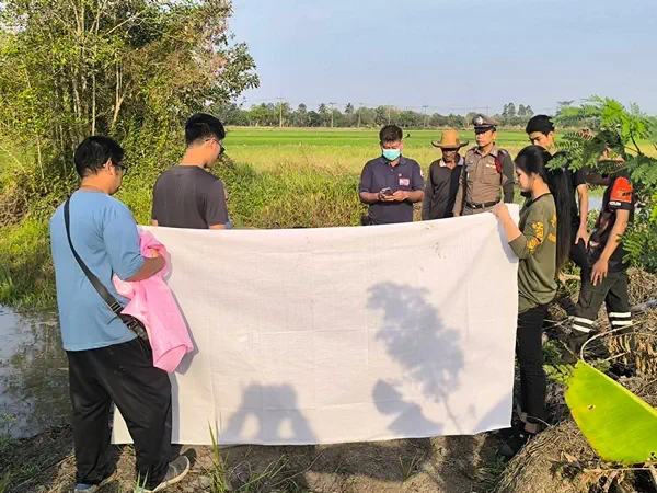 นครนายก ชาวบ้านเดินออกกำลังพบศพคนจมน้ำเสียชีวิตในบ่อข้างถนน
