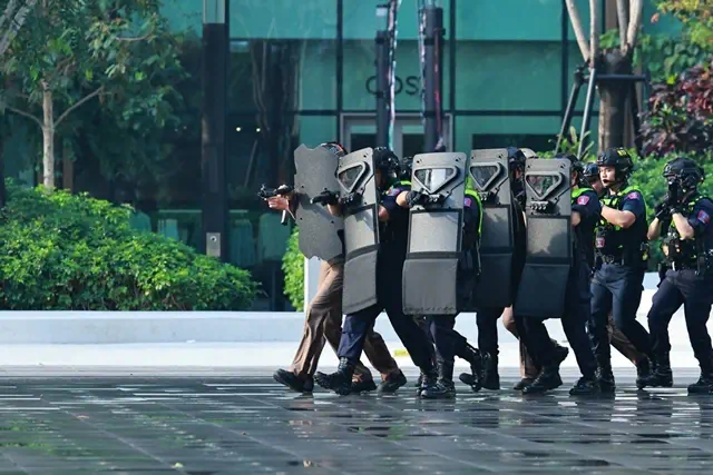 วันนี้ (20 กุมภาพันธ์ 2569) เวลา 08.00 น. พล.ต.อ.กิตติ์รัฐ พันธุ์เพ็ชร์ ผู้บัญชาการตำรวจแห่งชาติ (ผบ.ตร.) เป็นประธานการซักซ้อมแผนเผชิญเหตุกราดยิงของเจ้าหน้าที่ตำรวจและตอบสนองเหตุการณ์ภาคประชาชน ของกองบัญชาการตำรวจนครบาล โดยมี พล.ต.อ.ธัชชัย ปิตะนีละบุตร รอง ผบ.ตร., พล.ต.ท.สุรพงษ์ ถนอมจิตร ผู้ช่วย ผบ.ตร., พล.ต.ท.กฤษฎา กาญจนอลงกรณ์ ผู้ช่วย ผบ.ตร., พล.ต.ท.สยาม บุญสม ผู้บัญชาการตำรวจนครบาล (ผบช.น.), พล.ต.ต.ชรินทร์ โกพัฒน์ตา รอง ผบช.น., พล.ต.ต.ชัยพัชร์ ศรีประเสริฐ รอง ผบช.น. พร้อมด้วยผู้บังคับการตำรวจนครบาล 1–9, กองบังคับการสายตรวจและปฏิบัติการพิเศษ, กองบังคับการอำนวยการ, รองผู้บังคับการตำรวจนครบาล 1–9 (ฝ่ายป้องกันปราบปราม), ผู้แทนจากสำนักงานยุทธศาสตร์ตำรวจ, ผู้สังเกตการณ์จากฝ่ายรักษาความปลอดภัย World Bank/IMFและผู้สังเกตการณ์จากกระทรวงการคลัง เข้าร่วมสังเกตการณ์การซักซ้อมแผนเผชิญเหตุ ณ ห้างสรรพสินค้าวันแบงค็อก (One Bangkok)
