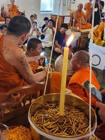 สุโขทัย หลวงปู่ศิลาเมตตาเป็นประธานฝ่ายสงฆ์งานปิดทองฝังลูกนิมิตวัดพลายชุมพลคอหวยไม่พลายเลขขันน้ำมนต์
