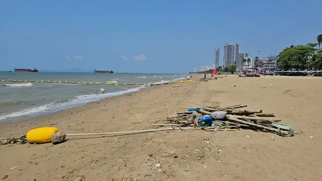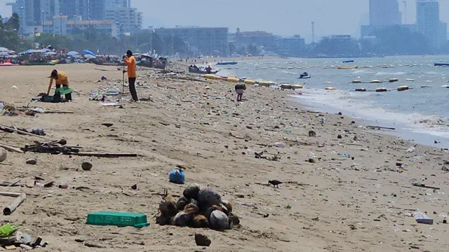 เมื่อวันที่ 22 กุมภาพันธ์ 2569 ผู้สื่อข่าวลงพื้นที่สำรวจบริเวณชายหาดจอมเทียน เมืองพัทยา อำเภอบางละมุง จังหวัดชลบุรี หลังได้รับแจ้งจากประชาชนและนักท่องเที่ยวว่า พบขยะจำนวนมากถูกคลื่นซัดขึ้นมาเกยชายหาดเป็นระยะทางยาวหลายกิโลเมตร ส่งผลกระทบต่อบรรยากาศการท่องเที่ยวและความปลอดภัยของผู้มาใช้บริการชายหาด