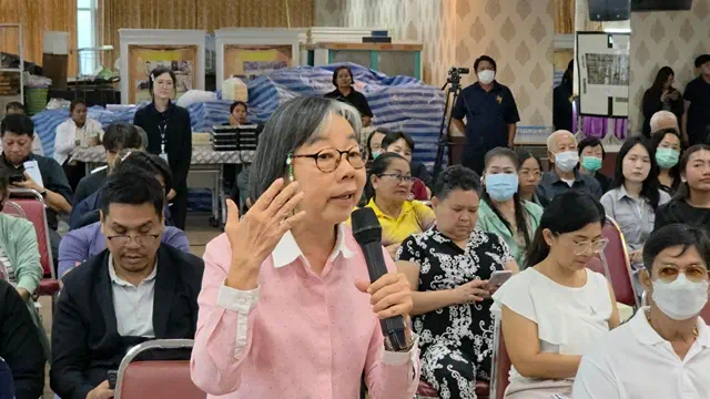 ด้าน นายนุกูลกิจ คำรพธนะสาร อายุ 65 ปี ชาวบ้าน กล่าวว่า ผมอยากให้ดูเกี่ยวกับภาพรวมทั้งหมดนะครับ เพราะว่ามันมีสายทางที่มันทับกันนะครับ โดยรถไฟสายความเร็วสูงกับรถไฟสายสีแดงส่วนต่อขยายนะครับ เพราะว่าจะวิ่งมันต้องไปคู่กันตลอดนะครับ วิ่งมาตั้งแต่บางซื่อมาเลยบ วิ่งมาถึงที่ธรรมศาสตร์ ในส่วนนี้มีการทับเส้นทางกัน ผมอยากให้พิจารณาให้มันรอบคอบนะครับ แล้วก็เป็นภาพรวม บูรณาการเข้าด้วยกัน รวมถึงสถานีต่างๆ ซึ่งการใช้ประโยชน์ของพื้นที่ของจังหวัดปทุมธานีในโครงการนี้ ผมมองว่าการใช้ประโยชน์ยังน้อยอยู่ ยังไม่ได้ใช้ประโยชน์มากเท่าที่ควร แล้วก็ทาง จ.ทุมธานี ก็มีโครงการจะทำรถโมโนเรลด้วยนะครับ เพราะว่าปทุมธานีเป็นเมืองใหญ่ มีประชากรมากขึ้น มีการสัญจรมากขึ้นนะครับ แต่สิ่งหนึ่งสิ่งใด ผมมีความเข้าใจดีนะว่า รถไฟความเร็วสูงเนี่ย เรื่องการจอดบ่อยๆ หรือว่าจอดความถี่ของแต่ละสถานี เราไม่ควรใช้ความถี่มาก ระยะทางไม่ควรใกล้ชิดกันมากนะครับ แต่ว่าขอให้คำนึงถึงว่า สภาพความเป็นจริงนะครับ ทาง Landscape ของปทุมธานีนะครับ ด้านประชากร ด้านเศรษฐกิจ และการเดินทาง ซึ่งเกี่ยวข้องโดยตรง คิดว่าน่าจะคุ้มค่ามากกว่าถ้ามีสถานี ขอฝากพิจารณาด้วย