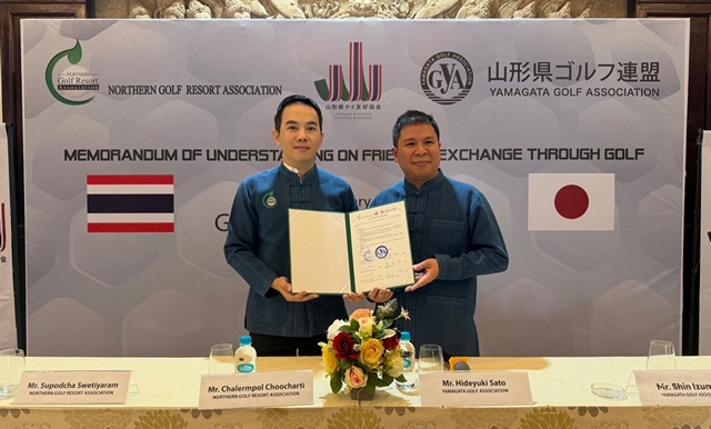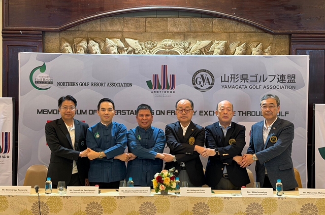 เมื่อวันที่ 23 กุมภาพันธ์ที่ผ่านมา นายเฉลิมพล ชูชาติ นายกสมาคมกอล์ฟรีสอร์ทภาคเหนือ พร้อมด้วย นายสุพชฌาย์ เสวตไอยาราม อุปนายกสมาคมกอล์ฟรีสอร์ทภาคเหนือ และ สมาคมกอล์ฟยามากาตะ แห่งจังหวัดยามากาตะ ประเทศญี่ปุ่น นำโดย Mr.Hideyuki Sato ประธานของ Yamagata Golf Federation พร้อมด้วย Mr.Izumiya Shin รองประธาน Yamagata Golf Federation และ Mr.Masahiko Matsuta จาก สมาคมมิตรภาพไทย-ยามากาตะ ได้ร่วมลงนามบันทึกความเข้าใจ ระหว่าง สมาคมกอล์ฟรีสอร์ทภาคเหนือ และ สมาคมกอล์ฟยามากาตะ แห่ง จังหวัดยามากาตะ ประเทศญี่ปุ่น