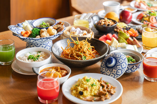 เติมเต็มประสบการณ์แห่งการเฉลิมฉลองด้วยอาหารเหนือในธีม “กาดหมั้ว” ที่จำลองบรรยากาศตลาดพื้นเมืองล้านนา เสิร์ฟเมนูท้องถิ่นรสชาติต้นตำรับจากวัตถุดิบคุณภาพ ถ่ายทอดเสน่ห์แห่งวัฒนธรรมการกินอยู่ของภาคเหนืออย่างแท้จริง