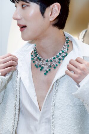 งานนี้นักแสดงและนักร้องหนุ่มสัญชาติเกาหลีขวัญใจสาวๆ เสริมทัพบิวตี้เจมส์ เปิดตัวคอลเลคชั่นเครื่องประดับแห่งความอบอุ่นและเป็นมงคล “Maison Abeille” รังสรรค์มรกตหลากเม็ดที่เรียงร้อยอย่างประณีต สะท้อนแรงบันดาลใจจากโครงสร้างอันสมบูรณ์แบบของรังผึ้ง ตัวผึ้งประดับเพชรบริสุทธิ์เปล่งประกายอย่างสง่างามเหนือองค์ประกอบที่สมดุล นิยามแห่งความประณีตและคุณค่าที่คงอยู่เหนือกาลเวลา ซึ่งถูกรังสรรค์ออกแบบผ่านฝีมือดีไซเนอร์ไทยอย่างประณีตจนได้ออกมาเป็นชิ้นงานที่ทรงคุณค่า เป็นตัวแทนในการส่งมอบความสุข คำอวยพร และความโชคดีให้แก่ทั้งผู้ให้และผู้รับ