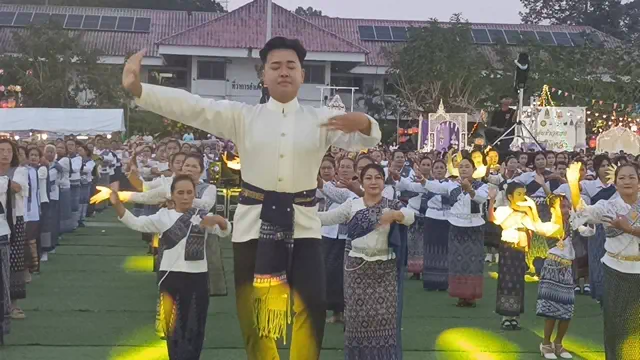 ไฮไลท์ในค่ำคืนเปิดงาน คือการแสดงรำบวงสรวงของนางรำกว่า 1,200 ชีวิต ที่พร้อมใจกันสวมใส่ผ้าไทยอันเป็นเอกลักษณ์ ร่ายรำประกอบบทเพลงมาลัยข้าวตอกอย่างอ่อนช้อย สะท้อนแรงศรัทธาของชาวบ้านฟ้าหยาดที่สืบทอดประเพณีนี้มากว่าร้อยปี จากเมล็ดข้าวธรรมดาสู่ศิลปะชั้นสูงแห่งพุทธบูชา ตามตำนานดอกมณฑารพแห่งลุ่มน้ำชี
