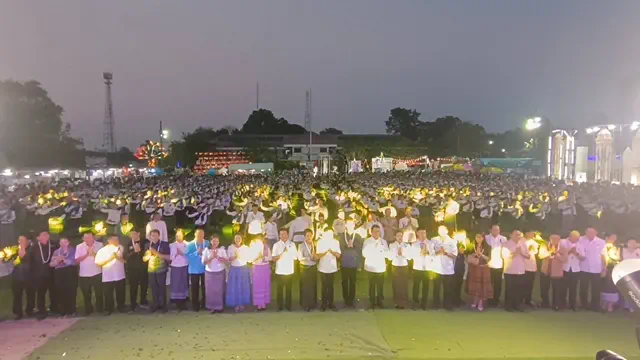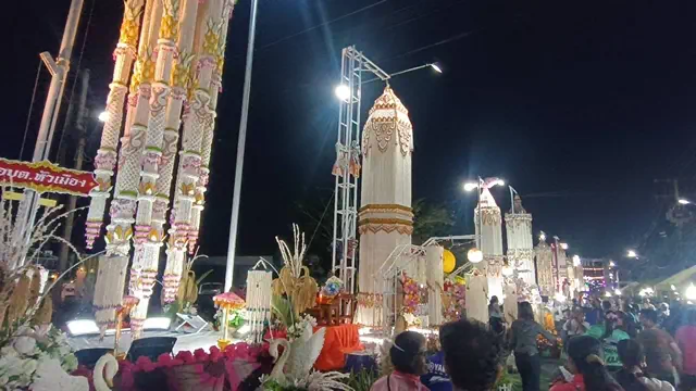 //เมื่อวันที่ 27 กุมภาพันธ์ 2569 เวลา 19.00 น. ณ บริเวณหน้าที่ว่าการอำเภอมหาชนะชัย จังหวัดยโสธร บรรยากาศแห่งศรัทธาและความวิจิตรตระการตาได้เปิดฉากขึ้นอย่างยิ่งใหญ่ ในงานประเพณีแห่มาลัยข้าวตอก ประจำปี 2569 ประเพณี “หนึ่งเดียวในโลก” ที่ชาวจังหวัดยโสธรภาคภูมิใจและร่วมสืบสานมาอย่างยาวนาน