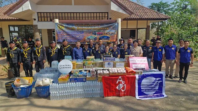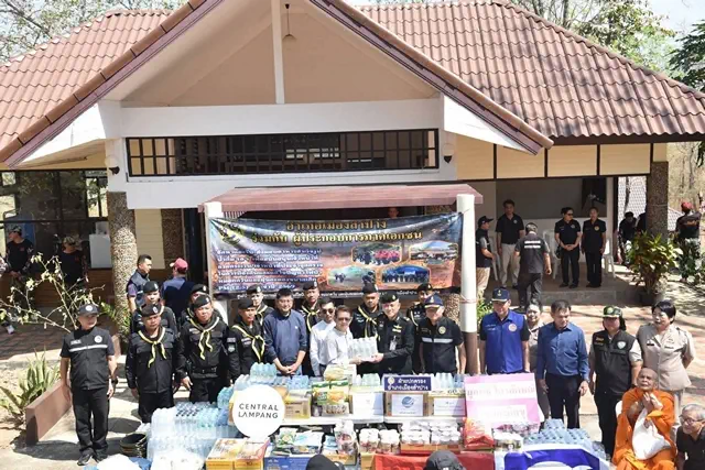 ลำปาง-อำเภอเมืองลำปาง ผนึกเอกชน มอบเสบียงหนุนกำลังพลเฝ้าระวังไฟป่าดอยพระบาท