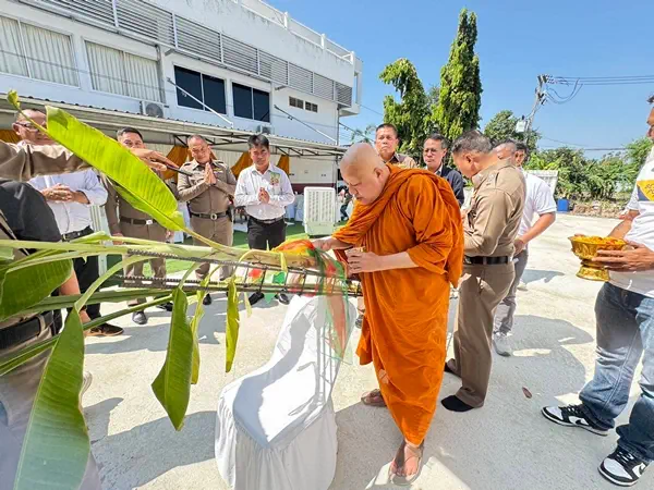 ปทุมธานี สภ.สามโคก ปทุมธานี จัดทำพิธีทอดผ้าป่าสามัคคี และพิธียกเสาเอกอาคารปฏิบัติการสืบสวน