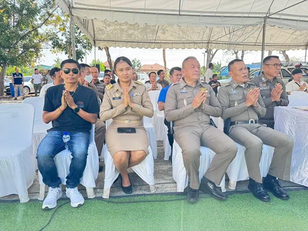 ตัวจากมหาวิทยาลัยชินวัตร เจ้าหน้าที่ตำรวจสภานีตำรวจภูธรสามโคก เจ้าหน้าที่สืบสวนสถานีตำรวจภูธรสามโคก และแขกผู้มีเกียรติ เข้าร่วมพิธีกันอย่างคึกคัก