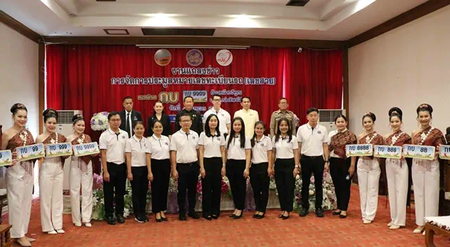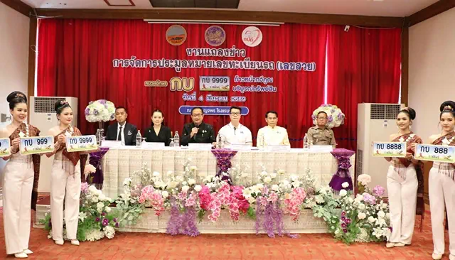 วันที่ 4 มีนาคม 2569 ที่ห้องประชุมเบญจพร โรงแรมริมปาว จ.กาฬสินธุ์ นายผดุงศักดิ์ อิ่มเอิบ รองผู้ว่าราชการ จ.กาฬสินธุ์ นายสยาม ภู่ทรัพย์สิน ขนส่ง จ.กาฬสินธุ์ พร้อมด้วยตัวแทนหน่วยงานที่เกี่ยวข้อง และเจ้าหน้าที่สำนักงานขนส่ง จ.กาฬสินธุ์ ร่วมกันแถลงข่าวการจัดประมูลหมายเลขทะเบียนรถ เลขสวย ซึ่งเป็นที่ต้องการหรือเป็นที่นิยมของประชาชน สำหรับ รถยนต์นั่งส่วนบุคคลไม่เกิน 7 คน (รถเก๋ง รถแวน รถกระบะสี่ประตู) หมวดอักษร “กบ” ก้าวหน้าทวีคูณ บริบูรณ์ทรัพย์สิน จำนวน 301 หมายเลข