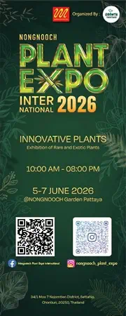 “NongNooch Plant Expo International 2026” ถือเป็นหนึ่งในงานแสดงสายพันธุ์พืชที่มีความหลากหลายมากที่สุด และเป็นงานไม้ประดับคุณภาพระดับนานาชาติที่ จัดเพียงปีละครั้งเท่านั้นผู้สนใจสามารถเข้าร่วมงานได้ตามวันและเวลาดังกล่าว แล้วมาสัมผัสโลกแห่งพรรณไม้ที่ครบ จบ และยิ่งใหญ่ที่สุดแห่งปีด้วยตัวคุณเอง สอบถามรายละเอียดเพิ่มเติมได้ที่ http://www.nongnoochpattaya.com