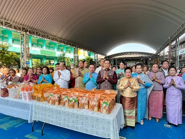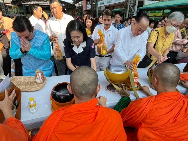 นอกจากนี้ ภายในงานทางเทศบาลตำบลบางเมืองจัดพิธีทำบุญตักบาตรข้าวสาร อาหารแห้ง ถวายเป็นพระราชกุศล แด่สมเด็จพระนางเจ้าสิริกิติ์ พระบรมราชินีนาถ พระบรมราชชนนีพันปีหลวง โดยได้รับความเมตตาจาก พระครูปลัดจริยวัฒน์ หรือ “หลวงพี่ตุ๋ย” ผู้ช่วยเจ้าอาวาสวัดมหาวงษ์ ปากน้ำ พร้อมด้วยคณะสงฆ์ วัดมหาวงษ์ จำนวน 9 รูป รับบิณฑบาตและประกอบพิธีเจริญชัยมงคลคาถาเพื่อความเป็นสิริมงคลเนื่องในวันสตรีสากล