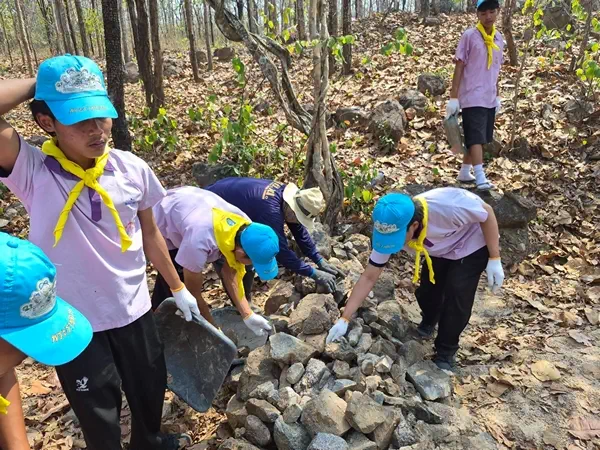 เมื่อวันที่ 9 มีนาคม 2569 ศูนย์อำนวยการจิตอาสาพระราชทาน มณฑลทหารบกที่ 310 จัดกำลังพลจิตอาสา 904 และกำลังพลจิตอาสาพระราชทาน ร่วมกับเยาวชนจิตอาสาจากโรงเรียนยกกระบัตรวิทยาคม และประชาชนจิตอาสาบ้านคลองสัก ดำเนินกิจกรรมจัดทำแนวกันไฟและสร้างฝายชะลอน้ำ ในพื้นที่ป่าชุมชนบ้านคลองสัก ตำบลน้ำรึม อำเภอเมือง จังหวัดตาก