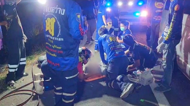 บุรีรัมย์-หนุ่ม 32 ปีซึ่งมอเตอร์ไซค์ข้ามเลนประสานรถตู้โดยสารดับพระอึ้ง