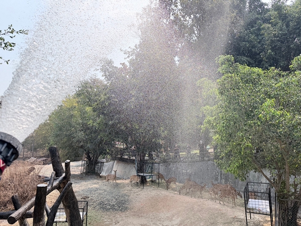 ในส่วนการดูแลพื้นที่ภายในสวนสัตว์ตลอดจนคุณภาพชีวิตสัตว์ เจ้าหน้าที่ที่เกี่ยวข้องและทีมสัตวแพทย์ได้ติดตั้งระบบพ่นฝอยละอองน้ำในส่วนแสดงสัตว์บางจุด และใช้รถน้ำฉีดพ่นละอองน้ำในอากาศบริเวณต้นไม้รอบสวนสัตว์ เพื่อเพิ่มความชุ่มชื้นในชั้นบรรยากาศ ช่วยลดอุณหภูมิสะสม ลดภาวะเครียดจากความร้อนและช่วยดักจับฝุ่นละอองขนาดเล็กในบริเวณที่อยู่อาศัยของสัตว์