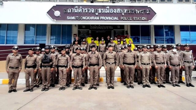 พ.ต.อ.สมชาย ขอค้า ผู้กำกับการ สภ.เมืองสมุทรสงคราม กล่าวว่า การตรวจราชการประจำปี 2568 ที่ผ่านมา สภ.เมืองสมุทรสงคราม ได้รับรางวัลผลการปฏิบัติงานระดับดีเยี่ยม อันดับที่ 1 สถานีตำรวจระดับใหญ่ โครงการสร้างเครือข่ายการมีส่วนร่วมของประชาชนในการแก้ไขปัญหาความเดือดร้อนของประชาชนในระดับสถานีตำรวจ เพื่อสนับสนุนการป้องกันอาชญากรรม ดังนั้นปีนี้จึงมุ่งมั่นที่จะรักษามาตรฐานองค์กร และกำชับเจ้าหน้าที่ทุกคนให้ปฏิบัติงานด้วยความสุภาพ จริงใจ และพร้อมช่วยเหลือบำบัดทุกข์ บำรุงสุขประชาชนโดยไม่เลือกปฏิบัติและพร้อมให้บริการตลอด 24 ชั่วโมง