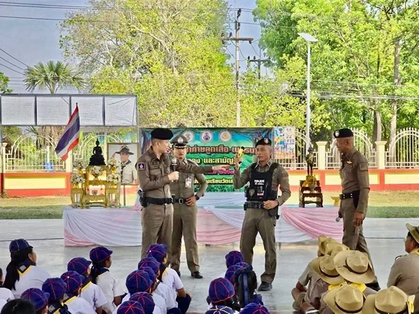 นครปฐม-ผกก.สภ.ดอนตูม นำทีมตำรวจให้ความรู้ความปลอดภัยนักเรียนรับมือเหตุฉุกเฉิน สร้างความปลอดภัยในสถานศึกษา