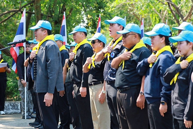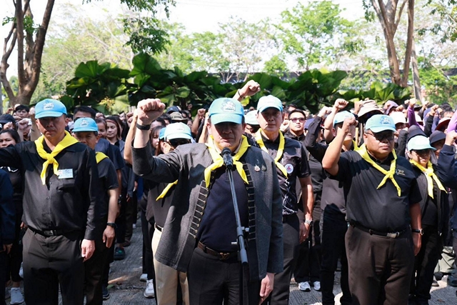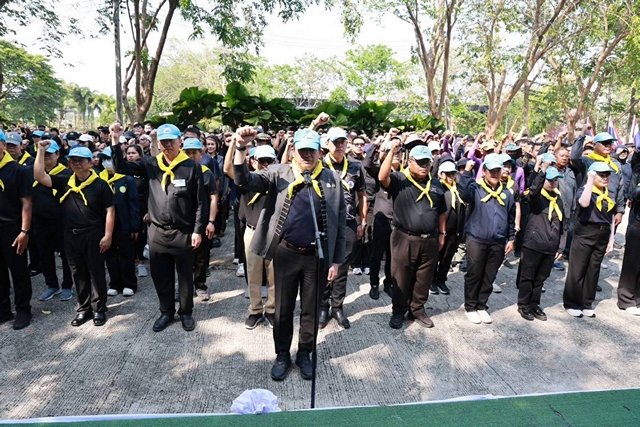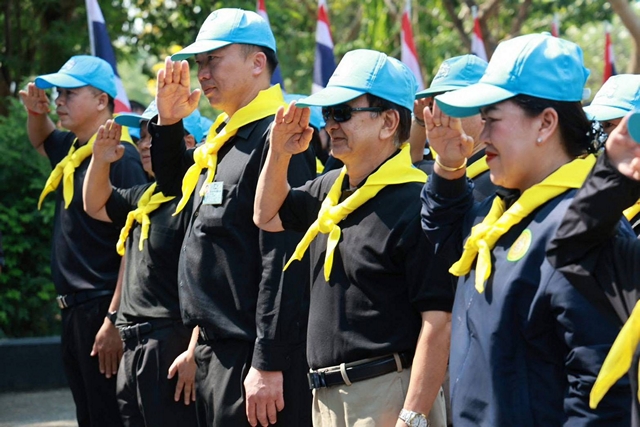 ข้าราชการ ลูกจ้างและพนักงานจ้าง สังกัดองค์การบริหารส่วนจังหวัดพิษณุโลก ที่พร้อมใจสวมชุดจิตอาสาพระราชทานและเสื้อสีดำเข้าร่วมกิจกรรมอย่างพร้อมเพรียง