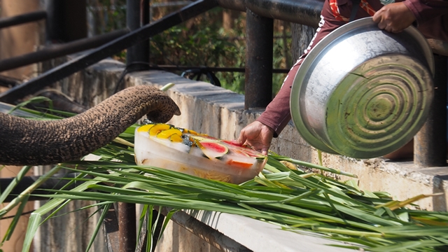 โดยกิจกรรมในครั้งนี้ สวนสัตว์ขอนแก่นได้มอบหมายให้ผู้บริหาร และเจ้าหน้าที่ร่วมกันจัดเตรียม อาหารแช่แข็งขนาดใหญ่ จากผักและผลไม้ที่เป็นอาหารโปรดของช้างไทย ได้แก่ ฟักทอง แครอท แตงโม สับปะรด และขนุน นำมาแช่แข็งเป็นก้อนน้ำแข็งขนาดใหญ่ เพื่อมอบให้กับ “พังปุ๊ก” และ “พังจิ๋ม” โดยกิจกรรมดังกล่าวนอกจากจะช่วยให้ช้างได้คลายร้อนในช่วงอากาศร้อนแล้ว ยังเป็นการส่งเสริมพฤติกรรมตามธรรมชาติของสัตว์ (Animal Enrichment) ช่วยลดความเครียด และกระตุ้นให้ช้างได้ใช้ทักษะตามธรรมชาติในการหาอาหาร