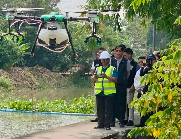 ปทุมธานี “นายกแจ๊ส” บินโดรนพ่นสารชีวภาพ ลุยกำจัดผักตบชวา ตั้งเป้าคืนคลองสวยน้ำใสทั่วจังหวัด