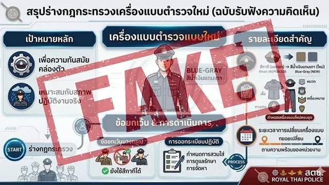 วันนี้ (19 มีนาคม 2569) พล.ต.ท.ชัยต์พจน สูวรรณรักษ์ ผู้บัญชาการสำนักงานกำลังพล/รองโฆษกสำนักงานตำรวจแห่งชาติ เปิดเผยว่า ตามที่ปรากฏข่าวแพร่หลายในสื่อสังคมออนไลน์ว่า สำนักงานตำรวจแห่งชาติมีการร่างกฎกระทรวงเครื่องแบบตำรวจใหม่ ซึ่งมีลักษณะที่แตกต่างไปจากเครื่องแบบเดิม โดยมีการเปลี่ยนสีเครื่องแบบ และรูปแบบที่แตกต่างจากเดิม จนเกิดกระแสวิพากษ์วิจารณ์และเข้าใจคลาดเคลื่อนในสื่อสังคมออนไลน์เป็นอย่างมากนั้น
