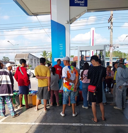 สงขลา-เริ่มวิกฤต !ชาวบ้านอำเภอระโนด แห่นำแกลลอนน้ำมัน จองคิวรอเติมน้ำมัน