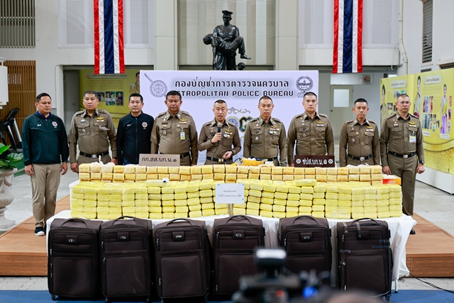 วันที่ 16 มีนาคม 2569 ที่กองบัญชาการตำรวจนครบาล พล.ต.อ.สำราญ นวลมา รองผู้บัญชาการตำรวจแห่งชาติ พร้อมด้วย พล.ต.ท.สยาม บุญสม ผู้บัญชาการตำรวจนครบาล พล.ต.ต.ธีรเดช ธรรมสุธีร์ และ พ.ต.อ.วิชัย สนสกุล ผู้กำกับการสืบสวน กองบังคับการตำรวจนครบาล 1 ร่วมกันแถลงผลการทลายเครือข่ายค้ายาเสพติดรายใหญ่ ที่ลักลอบลำเลียงยาเสพติดเพื่อเตรียมกระจายจำหน่ายในพื้นที่กรุงเทพมหานครชั้นใน