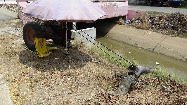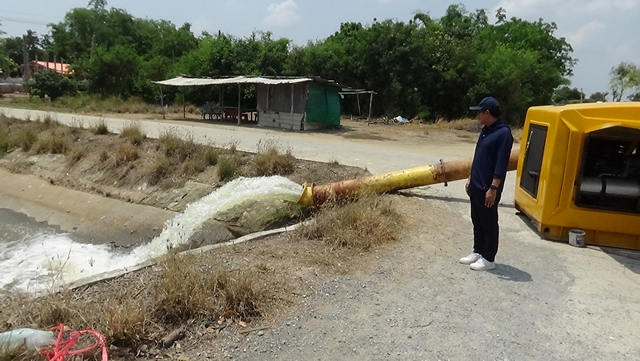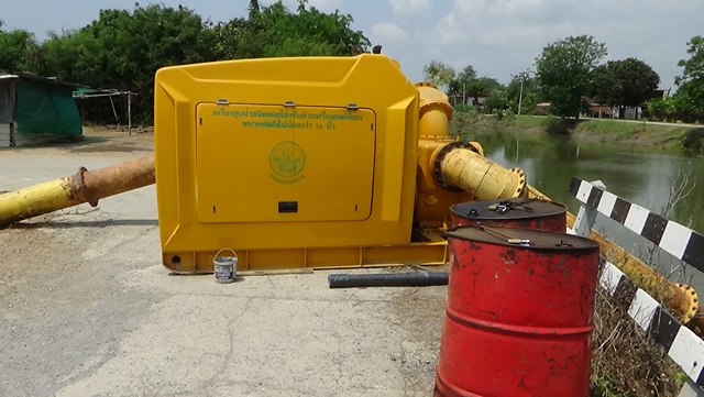 ดังนั้น นายพะลิน สุทธิบุตร ผู้อำนวยการโครงการส่งน้ำและบำรุงรักษายางมณี สำนักงานชลประทานที่ 12 ได้นำเครื่องสูบน้ำขนาด 14 นิ้วจำนวน 2 เครื่อง ขนาด 10 นิ้วจำนวน 3 เครื่อง และขนาด 8 นิ้วจำนวน 2 เครื่อง รวม 7 เครื่องมาติดตั้งเพื่อดูดน้ำลงคลองชลประทาน 2 ขวา 3ซ้าย เพื่อช่วยเกษตรกรในตำบลหัวตะพาน อำเภอวิเศษชัยชาญ จังหวัดอ่างทอง เกษตรกรตำบลมหาดไทย อำเภอเมือง จังหวัดอ่างทอง และเกษตรกรตำบลโพธิ์รังนก อำเภอโพธิ์ทอง จังหวัดอ่างทอง รวม 7,000 กว่าไร่