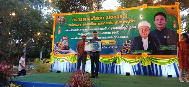 ณ.จวนผู้ว่าราชการจังหวัดนราธิวาส นายบุญช่วย หอมยามเย็น ผู้ว่าราชการจังหวัดนราธิวาส เปิดจวนฯ ต้อนรับ นายกเทศมนตรี นายธนาวิทย์ ไชยานุพงศ์ นายซาฟีอี เจ๊ะเลาะ ประธานคณะกรรมการจังหวัดนราธิวาส นายลุตฟี หะยีอีแต สมาชิกสภาผู้แทนราษฎรเขต1 พร้อมหน่วยงาน ผู้นำศาสนาทั้ง13 อำเภอตลอดจนสื่อมวลชนจังหวัดนราธิวาสนำโดย นายรพี มามะ รองนายกสมาคมนักสื่อสารมวลชนชายแดนภาคใต้ เข้าร่วมกิจกรรมละศีลอด (ปอซอแน) เดือนเซาวาล ฮ.ศ. 1447 ตามโครงการส่งเสริมการยกระดับคุณภาพชีวิตเพื่อเสริมสร้างความมั่นคงและสังคมสันติสุข ในเดือนรอมฎอน พ.ศ. 2569
