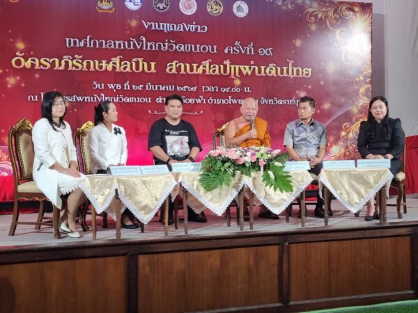 วันที่ 25 มีนาคม 2569 ที่โรงมหรสพหนังใหญ่วัดขนอน ตำบลสร้อยฟ้า อำเภอโพธาราม จังหวัดราชบุรี จัดงานแถลงข่าว “เทศกาลหนังใหญ่วัดขนอน ครั้งที่ 19” เดินหน้าตอกย้ำเมืองแห่งศิลปวัฒนธรรม ภายใต้แนวคิด “อัคราภิรักษศิลปิน สานศิลป์แผ่นดินไทย” ชูอัตลักษณ์ศิลปะการแสดงชั้นสูงของไทย สู่การท่องเที่ยวเชิงวัฒนธรรมช่วงสงกรานต์