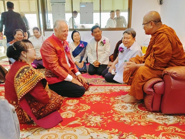 ขณะที่คุณแม่มณีรัตน์ ไชยสีหา ประธานอุปถัมภ์ฝ่ายฆราวาส กล่าวว่า ตนและดร.ไรเนอร์ คุ๊ปปี้ สามีชาวเยอรมันพร้อมครอบครัว มีความเลื่อมใสในพระพุทธศาสนา โดยที่ผ่านมาได้ร่วมบริจาคทำบุญกับวัดต่างๆ ทั้งในเขตพื้นที่และนอกพื้นที่ รวมทั้งและสนับสนุนกิจกรรมงานบุญประเพณีของส่วนราชการ องค์กรปกครองส่วนท้องถิ่น สถานศึกษาและชุมชนต่างๆมาอย่างต่อเนื่อง เช่น เป็นเจ้าภาพสร้างวัด สร้างศาลาวัด สร้างกุฎีถวายวัด สร้างซุ้มประตูโขง สร้างบ้านพักครู มอบเงินจัดซื้อครุภัณฑ์ทางการแพทย์ สนับสนุนกิจกรรมตำรวจ สภ.ห้วยเม็ก ในการทำบุญทอดผ้าป่าสามัคคีสมทบทุนสร้างอาคารจิตเวช โรงพยาบาลห้วยเม็กในครั้งนี้ ตนและครอบครัว ได้ร่วมบริจาคเงินจำนวน 3,000,000 ล้านบาท