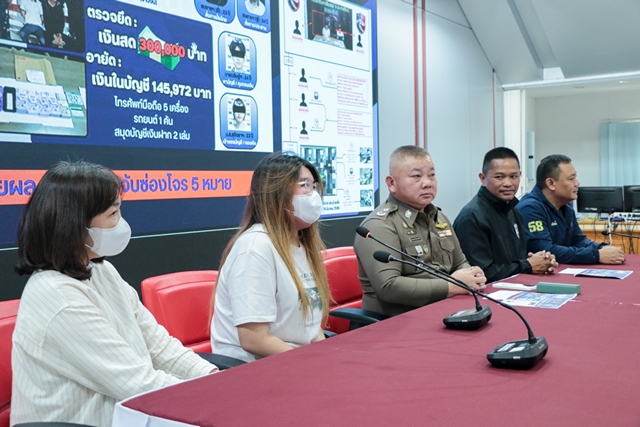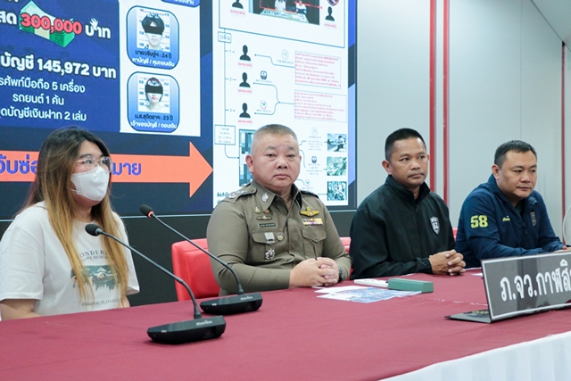 ทั้งนี้จากการตรวจสอบพบว่า เมื่อวันที่ 6 มี.ค.2569 ได้มี น.ส.ชญาดา โกกะนุทรานนท์ (ผู้เสียหาย) แจ้งความร้องทุกข์ที่ สภ.รัตนาธิเบศร์ จ.นนทบุรี คดีหลอกลวงให้โอนเงินเพื่อทำงานออนไลน์หารายได้พิเศษ ถูกหลอกลวงให้โอนเงินเข้าบัญชีธนาคาร ชื่อบัญชี น.ส.สุจิตรา จิตติวัฒน์ ทำให้ได้รับความเสียหายเป็นเงิน จํานวน 440,400 บาท จากนั้นเจ้าหน้าที่ชุดสืบสวนได้ขยายผลตรวจสอบแหล่งที่มาของเงิน พร้อมกับได้ติดต่อเชิญ น.ส.ชญาดา โกกะนุทรานนท์ ผู้เสียหาย มารับเงินที่ตรวจยึดจากกลุ่มผู้ต้องหาได้จำนวน 297,270 บาท