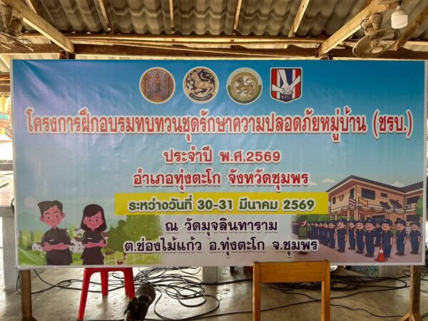 สถานการณ์ความปลอดภัยในพื้นที่ต้อง “พร้อมรับมือทุกวินาที” เมื่อล่าสุด วันที่ 31 มีนาคม 2569 เวลา 13.00 – 16.30 น. ตำรวจ สภ.เมืองชุมพร เดินหน้าเต็มกำลัง ส่งชุดวิทยากรลงพื้นที่ฝึกเข้ม “ชุดรักษาความปลอดภัยหมู่บ้าน (ชรบ.)” กว่า 350 นาย ณ ศูนย์ฝึกอบรม ชรบ.อำเภอทุ่งตะโก จังหวัดชุมพร
